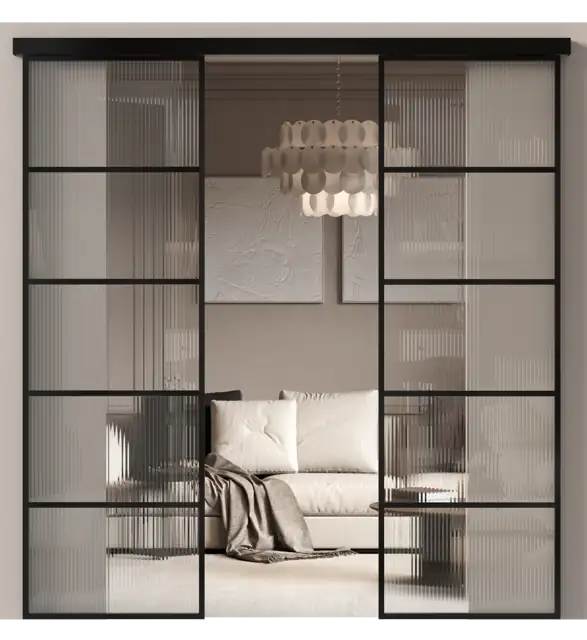 Межкомнатная дверь МКП-4 Раздвижная Двустворчатая, на каркасе Алюминий, со стеклом, цвет — Черная эмаль (RAL 9004)